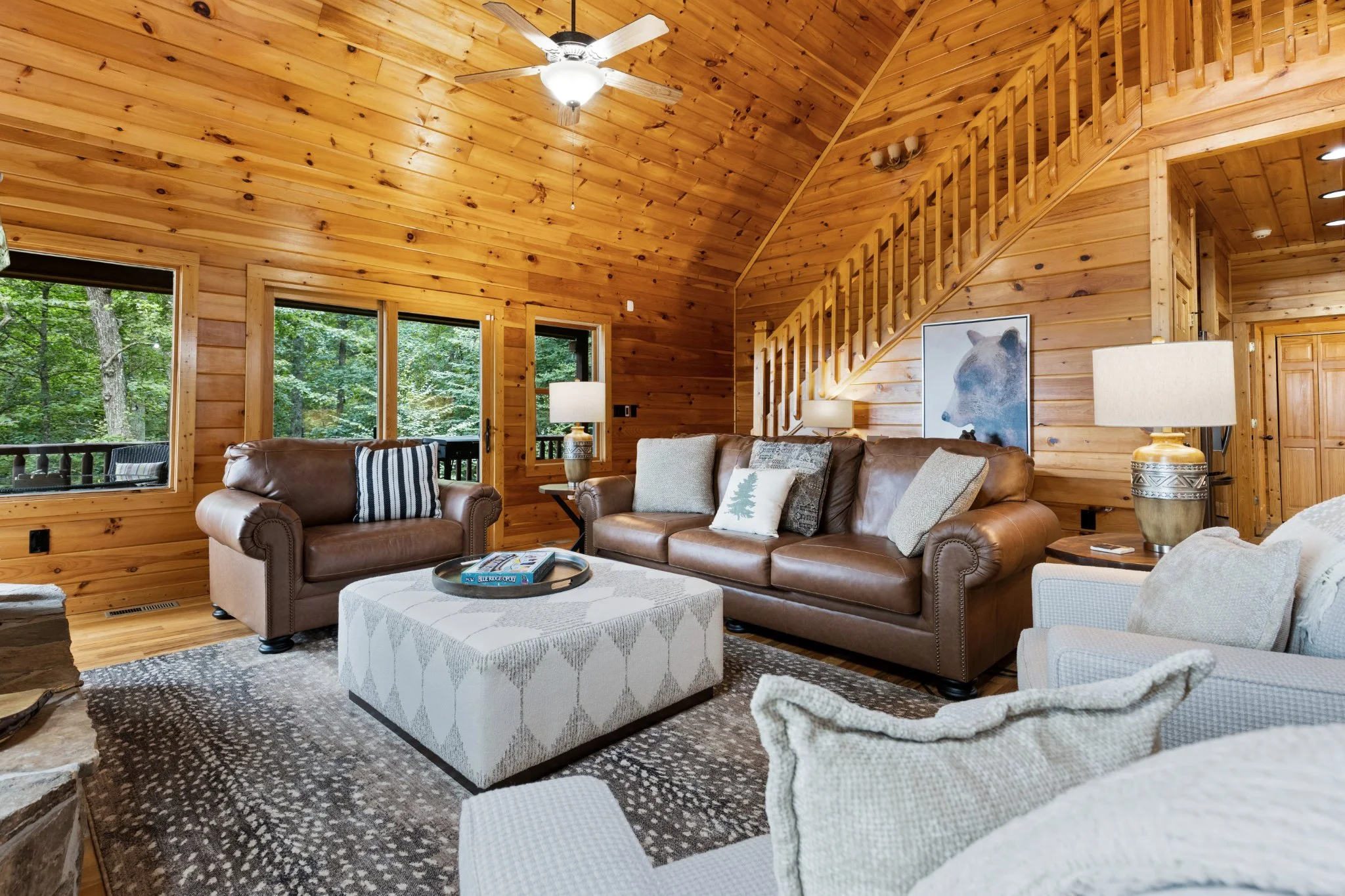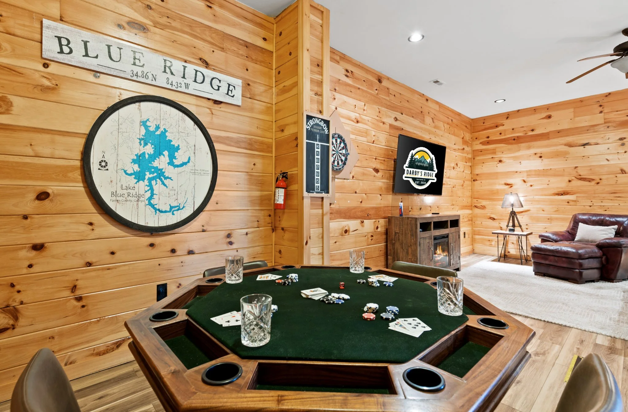 Sip bourbon at your own private bar, soak in the hot tub, or hike from the frontyard to Lake Blue Ridge. Darby’s Ridge is a luxury 3BR + loft with daybed and trundle, 3BA cabin with space for 8, just 10 minutes from downtown. Family-friendly with a game room, wrap around decks, outside fireplace for s’mores, Smart TVs, and plenty of space to gather. Enjoy stargazing with the telescope, high-speed Wi-Fi, and pet-friendly comfort — the perfect Blue Ridge retreat for families, couples, and friends.